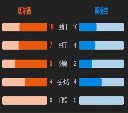 在恩佐和凯塞多双重首发的情况下,切尔西有着比较完备的中场体系,这也是他们能够和扎卡、萨迪基、特劳雷、勒费等人进行比拼的基础,然而实际发挥上、在制造机会的数量、前场抢劫的次数、以及由此所带来的得分机会,却差不多的切尔西的确是占据了数据优势,比如在控球率方面他们达到了69%,而桑德兰只有31%。可是在绝对机会的情况下却相差无几。